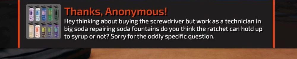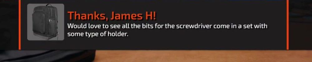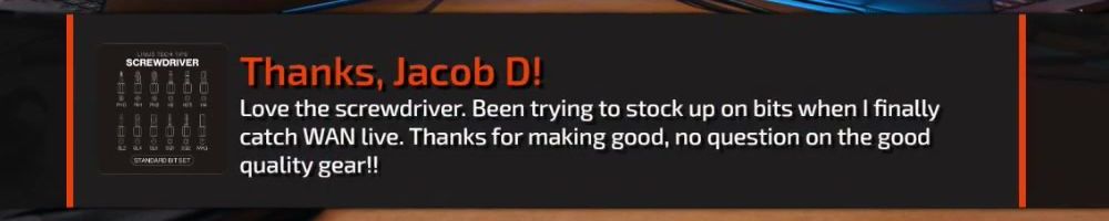 Love the screwdriver. Been trying to stock up on bits when I finally catch WAN live. Thanks for making good, no question on the good quality gear!!