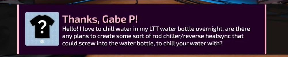 Hello! I love to chill water in my LTT water bottle overnight, are there any plans to create some sort of rod chiller/reverse heatsync that could screw into the water bottle, to chill your water with?
