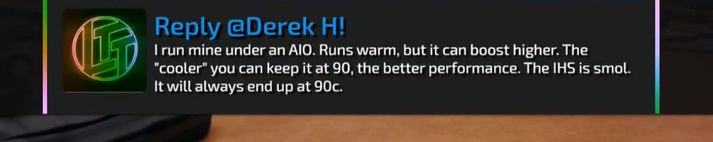 I run mine under an AIO. Runs warm, but it can boost higher. The "cooler" you can keep it at 90, the better performance. The IHS is smol. It will always end up at 90c.