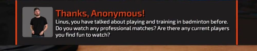 Linus, you have talked about playing and training in badminton before. Do you watch any professional matches? Are there any current players you find fun to watch?