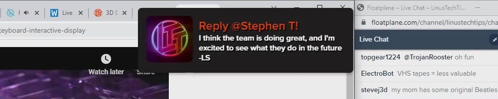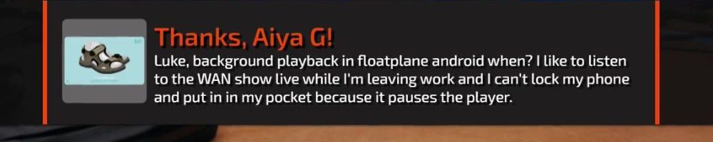 Hint: Use CTRL + F to search messages in this show, or use Whenplane's WAN Show Search tool to search for messages in all shows.