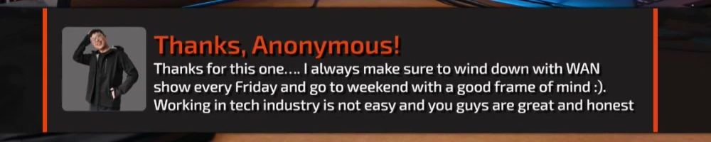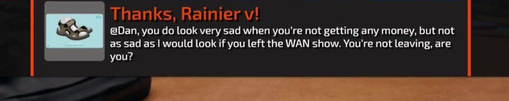 @Dan, you do look very sad when you're not getting any money, but not as sad as I would look if you left the WAN show. You're not leaving, are you?