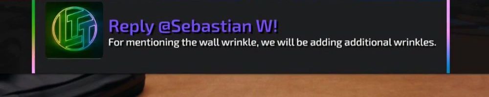 unrelated, was the wall wrinkle intentionally fixed? It looked like it got
