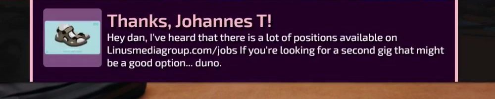 Linusmediagroup.com/jobs If you're looking for a second gig that might