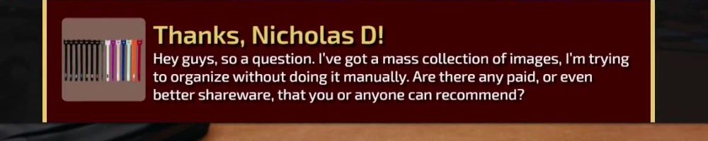 Hey guys, so a question. I've got a mass collection of images, I'm trying to organize without doing it manually. Are there any paid, or even better shareware, that you or anyone can recommend?