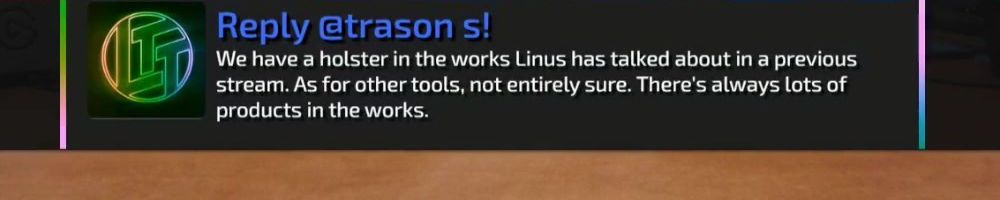 We have a holster in the works Linus has talked about in a previous stream. As for other tools, not entirely sure. There's always lots of products in the works.
