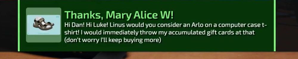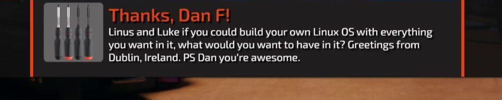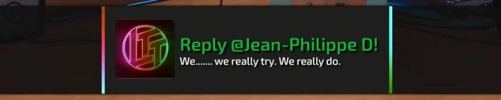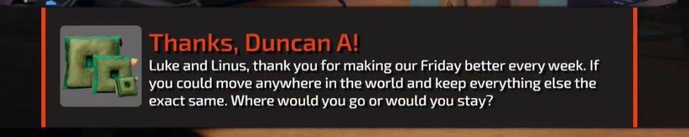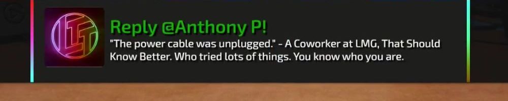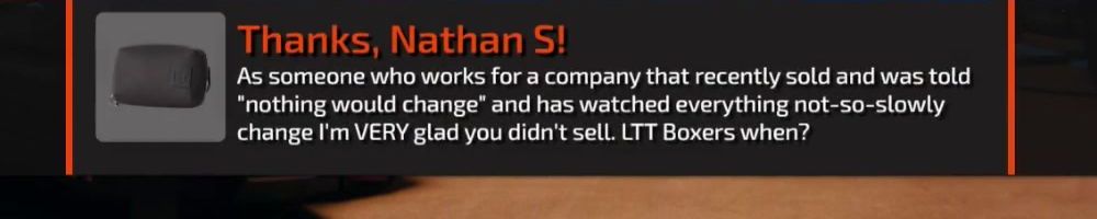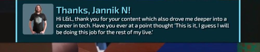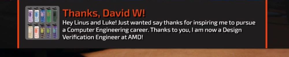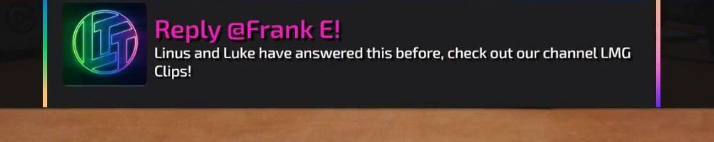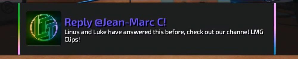 Hey Linus and Luke, been watching since NCIX days and it's been amazing watching you all grow. Just wanted to say keep up the great work and please make Luke laugh more, I love his hearty laugh.