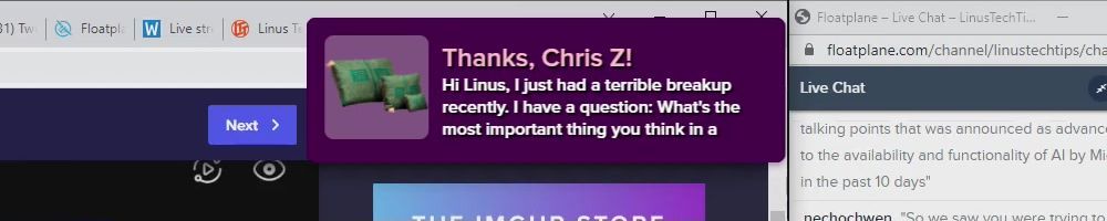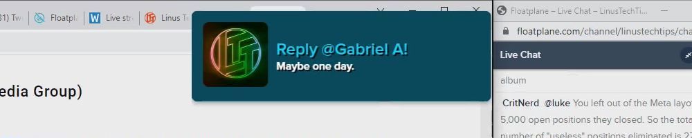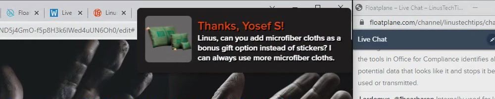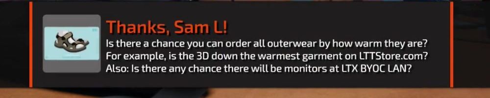 Hint: Use CTRL + F to search messages in this show, or use Whenplane's WAN Show Search tool to search for messages in all shows.