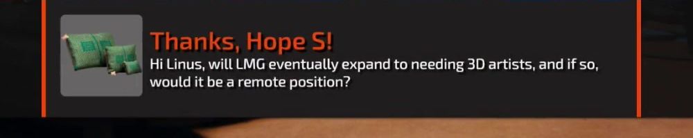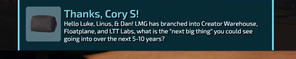 Hello Luke, Linus, & Dan! LMG has branched into Creator Warehouse, Floatplane, and LTT Labs, what is the "next big thing" you could see going into over the next 5-10 years?