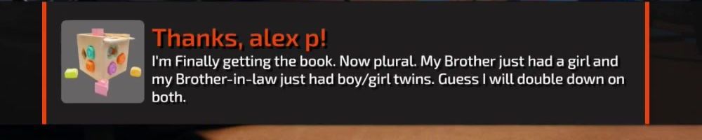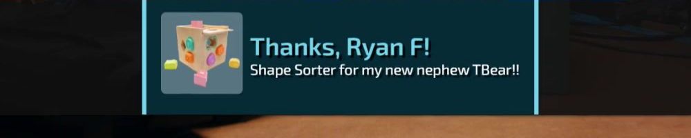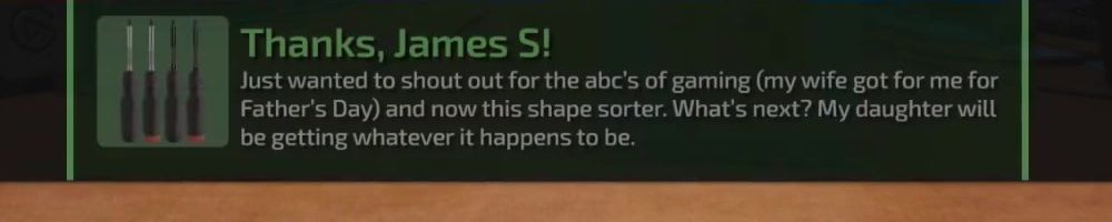 Just wanted to shout out for the abc's of gaming (my wife got for me for Father's Day) and now this shape sorter. What's next? My daughter will be getting whatever it happens to be.