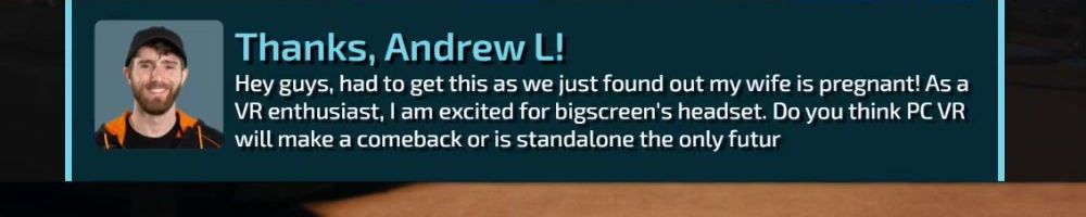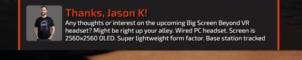 Any thoughts or interest on the upcoming Big Screen Beyond VR headset? Might be right up your alley. Wired PC headset. Screen is 2560x2560 OLED. Super lightweight form factor. Base station tracked