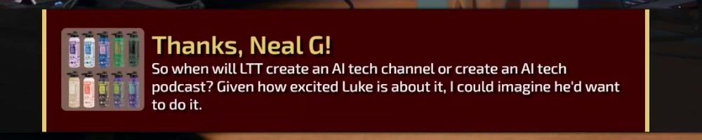 So when will LTT create an AI tech channel or create an AI tech podcast? Given how excited Luke is about it, I could imagine he'd want to do it.