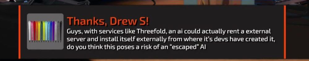 Guys, with services like Threefold, an ai could actually rent a external server and install itself externally from where it's devs have created it, do you think this poses a risk of an “escaped” AI