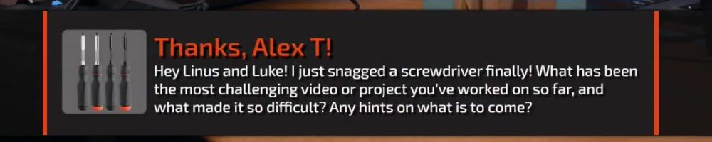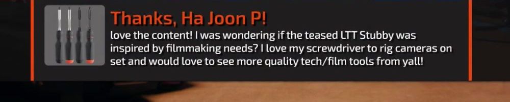 love the content! I was wondering if the teased LTT Stubby was inspired by filmmaking needs? I love my screwdriver to rig cameras on set and would love to see more quality tech/film tools from yall!