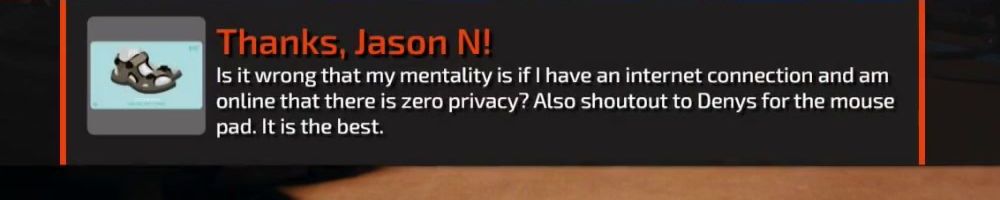 Is it wrong that my mentality is if I have an internet connection and am online that there is zero privacy? Also shoutout to Denys for the mouse pad. It is the best.