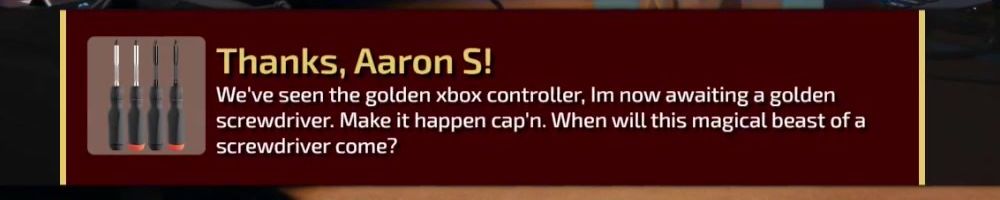 We've seen the golden xbox controller, Im now awaiting a golden screwdriver. Make it happen cap'n. When will this magical beast of a screwdriver come?
