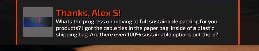 Whats the progress on moving to full sustainable packing for your products? I got the cable ties in the paper bag, inside of a plastic shipping bag. Are there even 100% sustainable options out there?