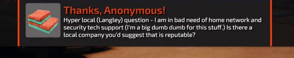 Hyper local (Langley) question - I am in bad need of home network and security tech support (I'm a big dumb dumb for this stuff.) Is there a local company you'd suggest that is reputable?