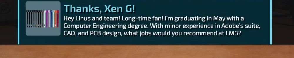 Hey Linus and team! Long-time fan! I'm graduating in May with a Computer Engineering degree. With minor experience in Adobe's suite, CAD, and PCB design, what jobs would you recommend at LMG?