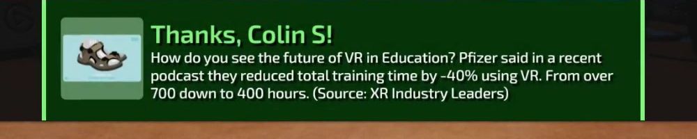 How do you see the future of VR in Education? Pfizer said in a recent podcast they reduced total training time by -40% using VR. From over 700 down to 400 hours. (Source: XR Industry Leaders)
