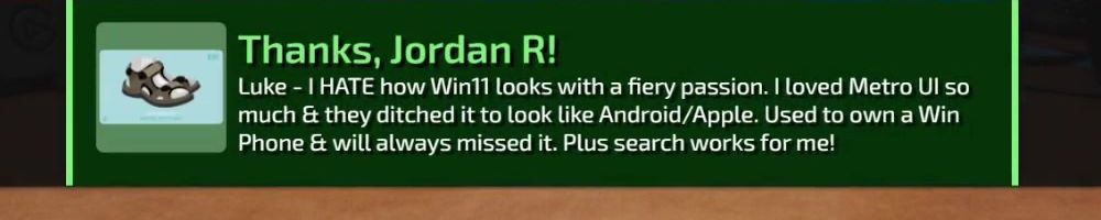 Luke - I HATE how Win11 looks with a fiery passion. I loved Metro UI so much & they ditched it to look like Android/Apple. Used to own a Win Phone & will always missed it. Plus search works for me!