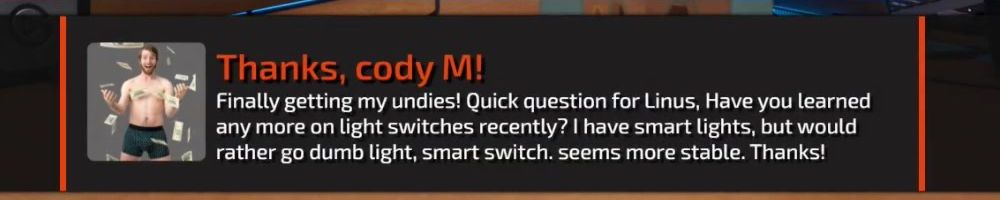Finally getting my undies! Quick question for Linus, Have you learned any more on light switches recently? I have smart lights, but would rather go dumb light, smart switch. seems more stable. Thanks!