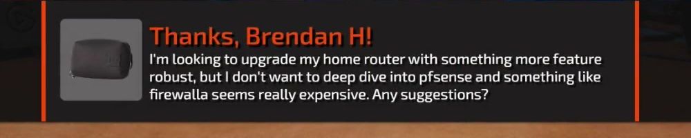I'm looking to upgrade my home router with something more feature robust, but I don't want to deep dive into pfSense and something like firewalla seems really expensive. Any suggestions?
