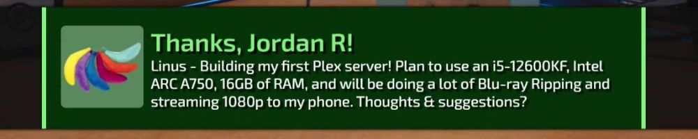 Linus - Building my first Plex server! Plan to use an i5-12600KF, Intel ARC A750, 16GB of RAM, and will be doing a lot of Blu-ray Ripping and streaming 1080p to my phone. Thoughts & suggestions?