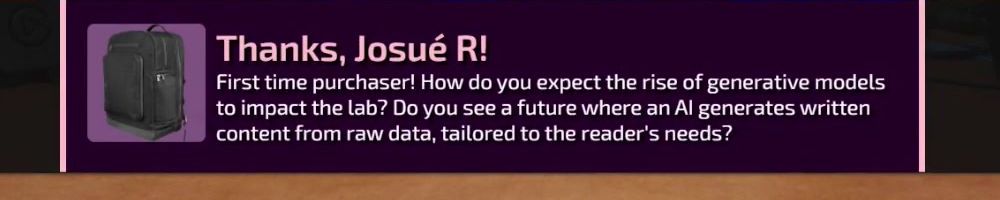 First time purchaser! How do you expect the rise of generative models to impact the lab? Do you see a future where an AI generates written content from raw data, tailored to the reader's needs?
