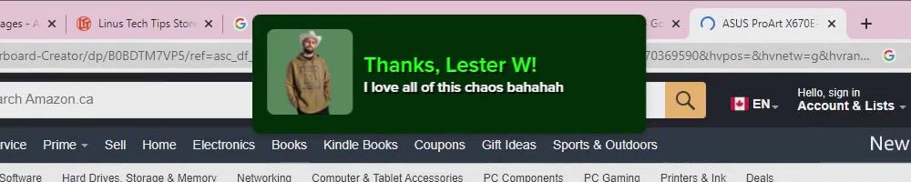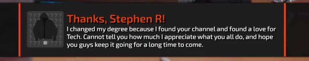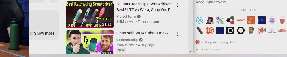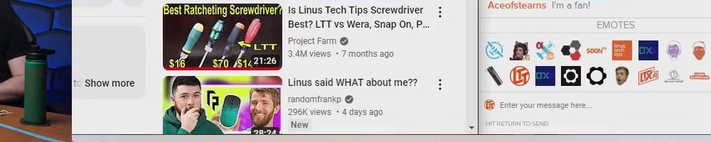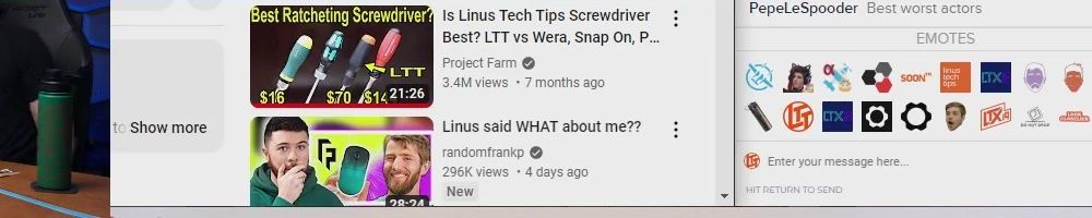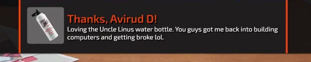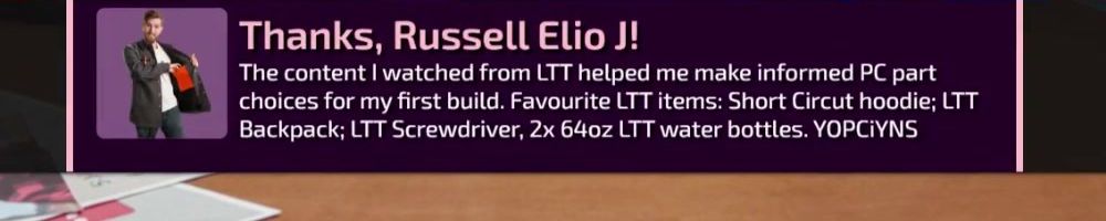 The content I watched from LTT helped me make informed PC part choices for my first build. Favourite LTT items: Short Circut hoodie; LTT Backpack; LTT Screwdriver, 2x 640z LTT water bottles. YOPCiYNS