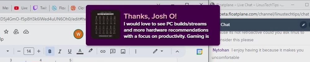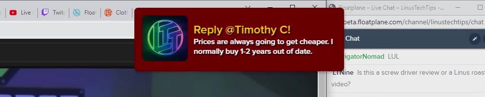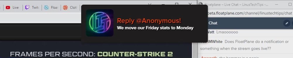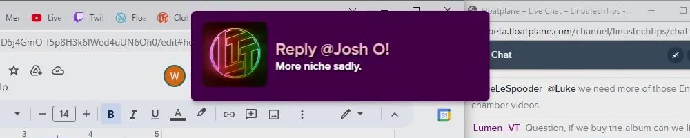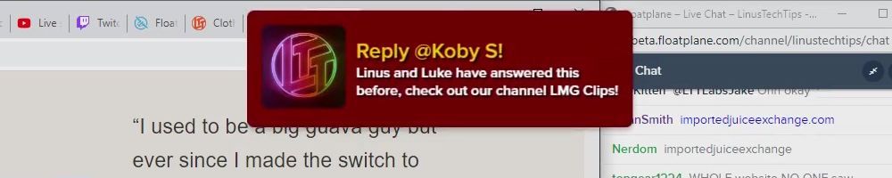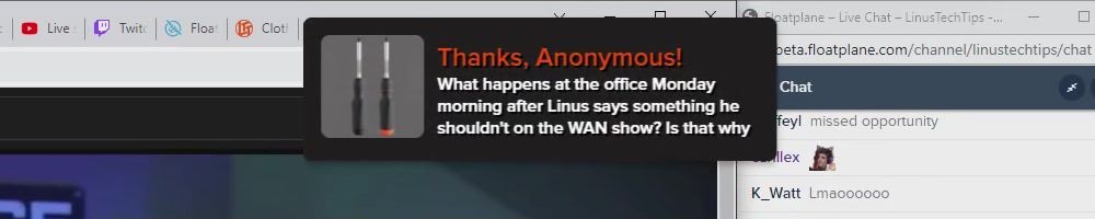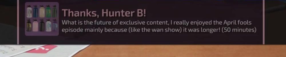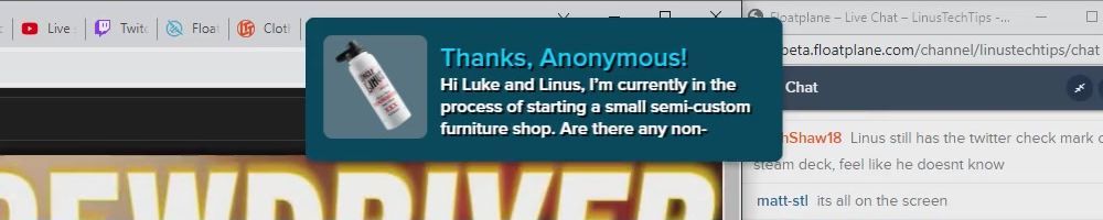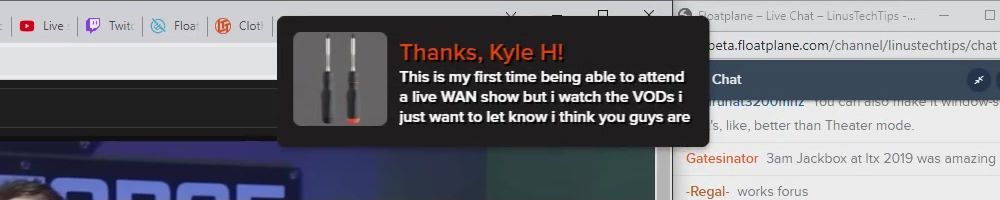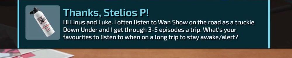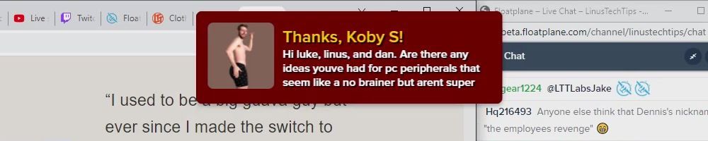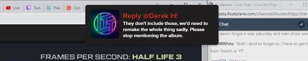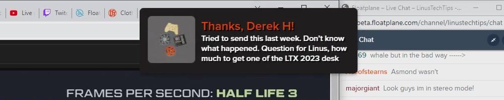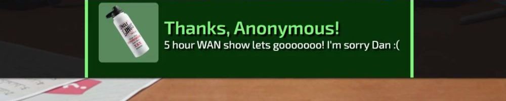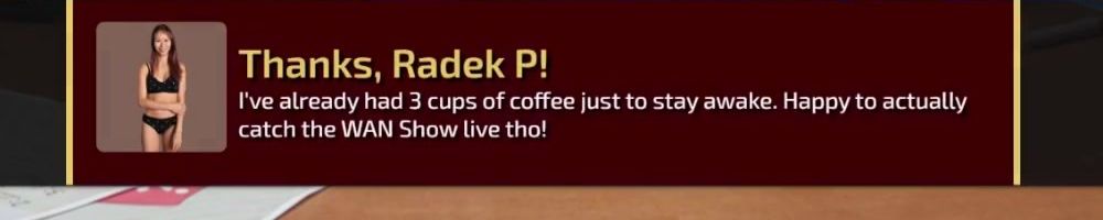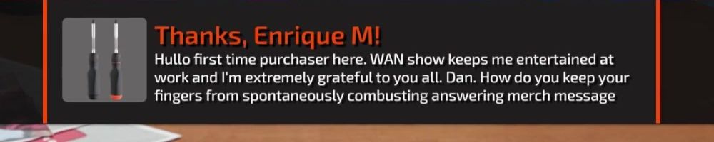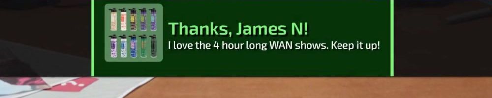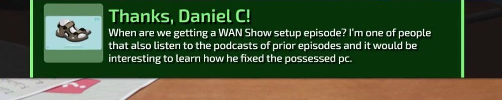 Hint: Use CTRL + F to search messages in this show, or use Whenplane's WAN Show Search tool to search for messages in all shows.