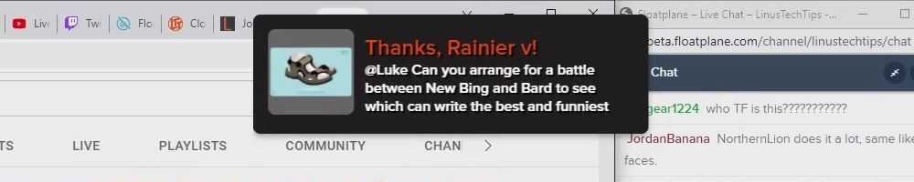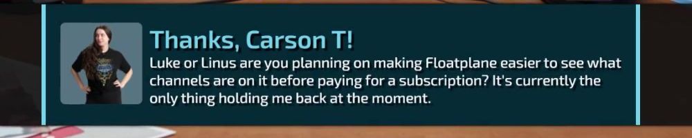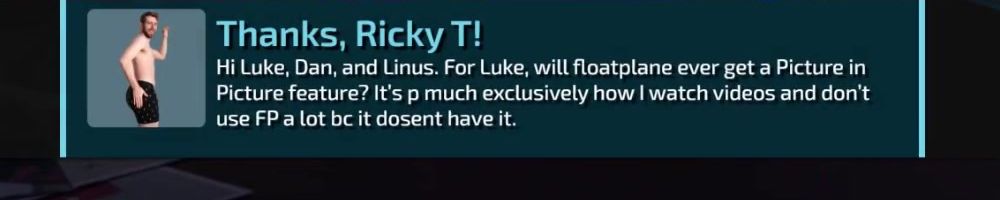 Hi Luke, Dan, and Linus. For Luke, will floatplane ever get a Picture in