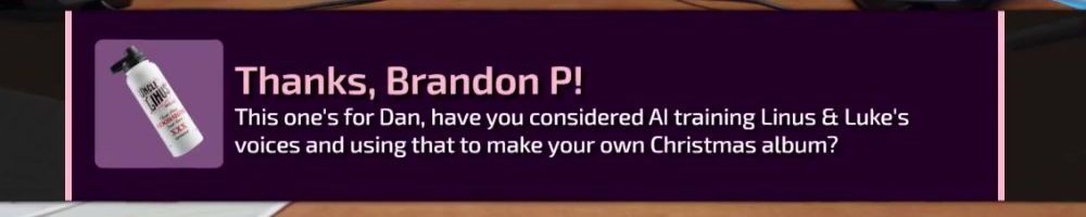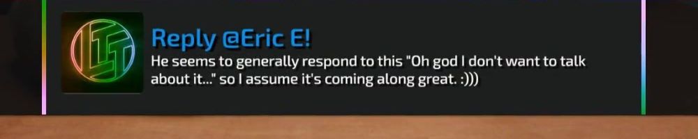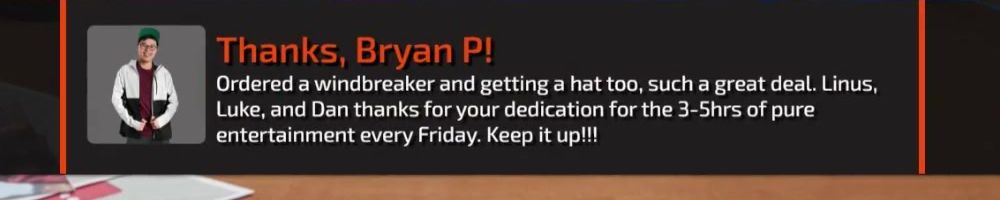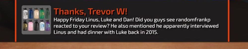 Happy Friday Linus, Luke and Dan! Did you guys see randomfrankp reacted to your review? He also mentioned he apparently interviewed Linus and had dinner with Luke back in 2015.