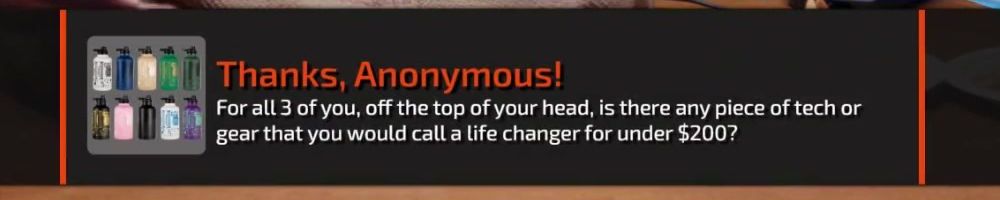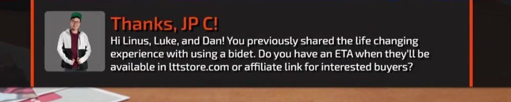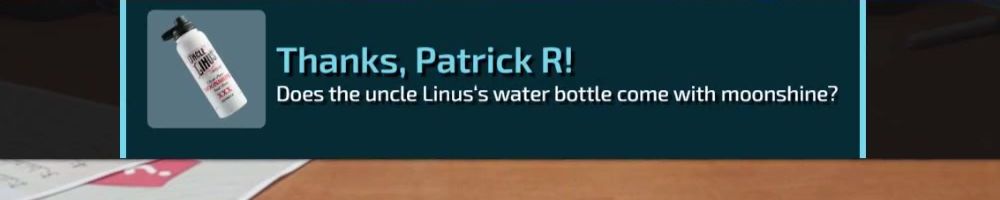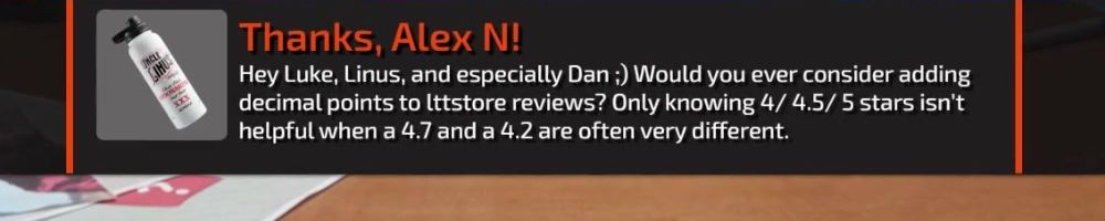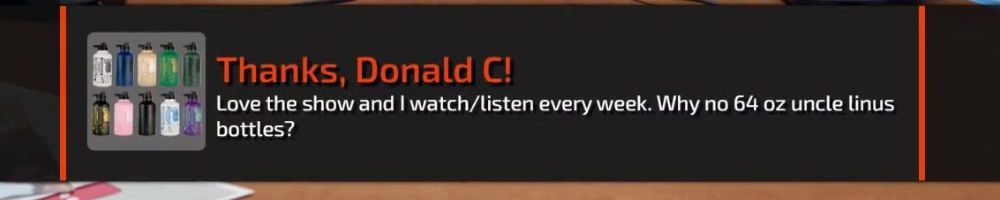 Hellothere.You guys missed me last week.linus\luke\yvonne what is the best memory you 3 have together. Also could I please have the thread specs for the ltt water bottle. I want to modify a circle lid
