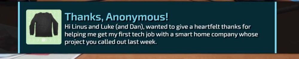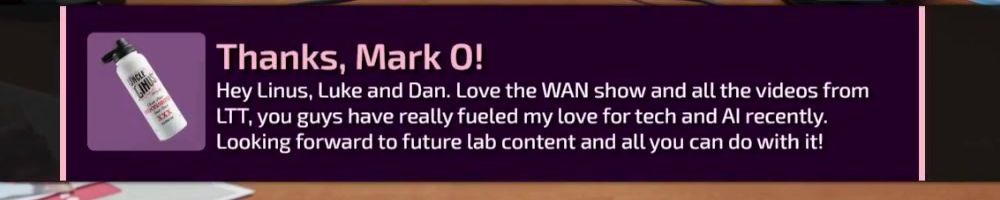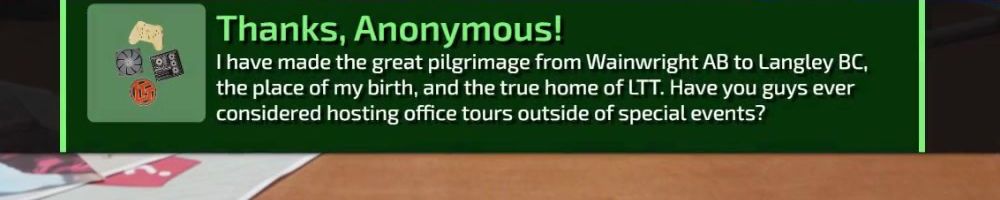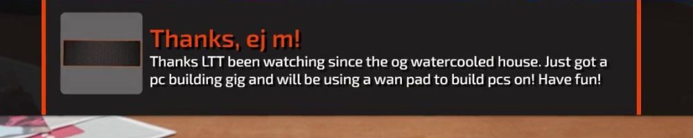 Thanks LTT been watching since the og watercooled house. Just got a pc building gig and will be using a wan pad to build pcs on! Have fun!
