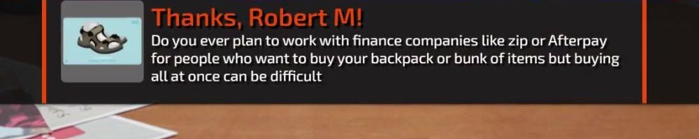 Do you ever plan to work with finance companies like zip or Afterpay for people who want to buy your backpack or bunk of items but buying all at once can be difficult