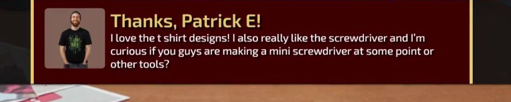 I love the t shirt designs! I also really like the screwdriver and I'm curious if you guys are making a mini screwdriver at some point or other tools?