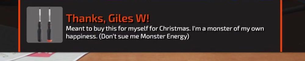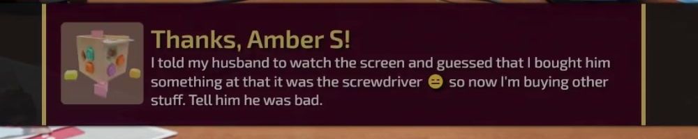 I told my husband to watch the screen and guessed that I bought him something at that it was the screwdriver 😬 so now I'm buying other stuff. Tell him he was bad.