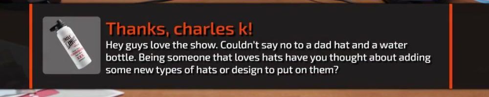 Hey guys love the show. Couldn't say no to a dad hat and a water