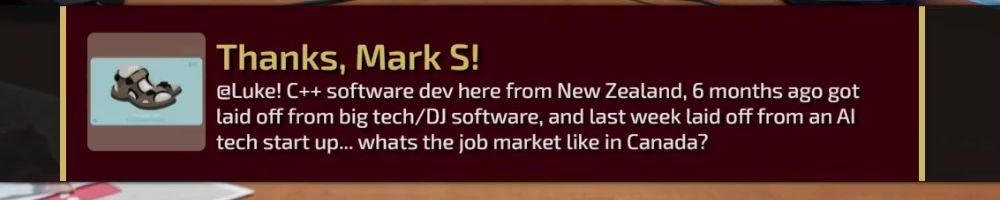 @Luke! C++ software dev here from New Zealand, 6 months ago got laid off from big tech/DJ software, and last week laid off from an AI tech start up... whats the job market like in Canada?