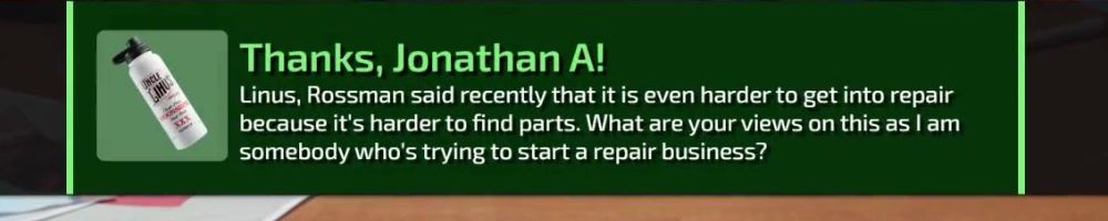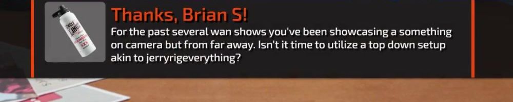 For the past several wan shows you've been showcasing a something on camera but from far away. Isn't it time to utilize a top down setup akin to jerryrigeverything?