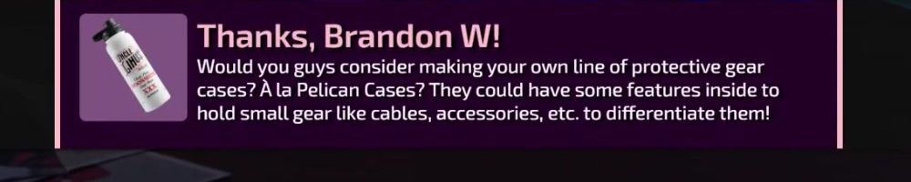 Would you guys consider making your own line of protective gear cases? A la Pelican Cases? They could have some features inside to hold small gear like cables, accessories, etc. to differentiate them!