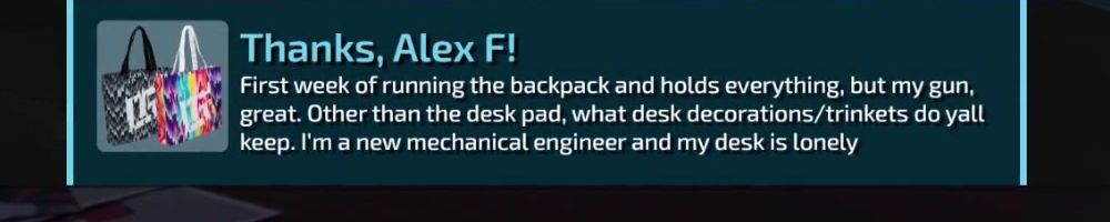 First week of running the backpack and holds everything, but my gun, great. Other than the desk pad, what desk decorations/trinkets do yall keep. I'm a new mechanical engineer and my desk is lonely