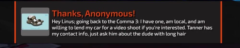 Hey Linus; going back to the Comma 3: I have one, am local, and am