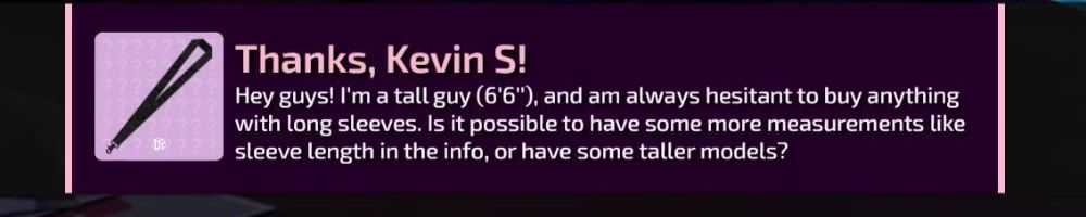 Hey guys! I'm a tall guy (6'6"), and am always hesitant to buy anything with long sleeves. Is it possible to have some more measurements like sleeve length in the info, or have some taller models?