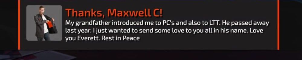 My grandfather introduced me to PC's and also to LTT. He passed away last year. I just wanted to send some love to you all in his name. Love you Everett. Rest in Peace