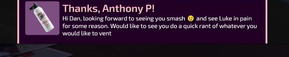 Hi Dan, looking forward to seeing you smash 😂 and see Luke in pain for some reason. Would like to see you do a quick rant of whatever you would like to vent