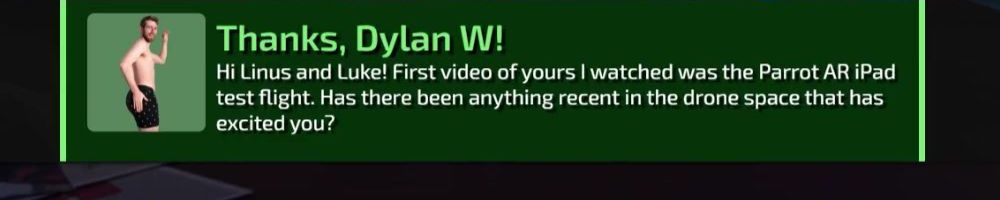 Hi Linus and Luke! First video of yours I watched was the Parrot AR iPad test flight. Has there been anything recent in the drone space that has excited you?