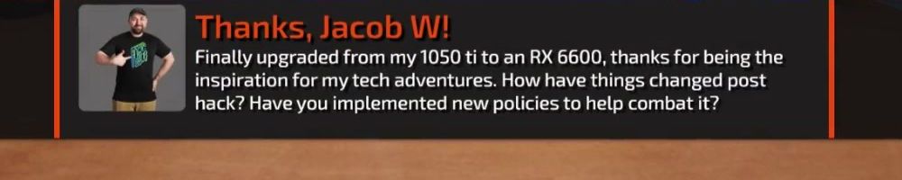 Finally upgraded from my 1050 ti to an RX 6600, thanks for being the inspiration for my tech adventures. How have things changed post hack? Have you implemented new policies to help combat it?