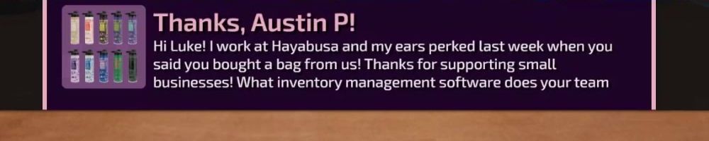 Hi Luke! I work at Hayabusa and my ears perked last week when you said you bought a bag from us! Thanks for supporting small businesses! What inventory management software does your team